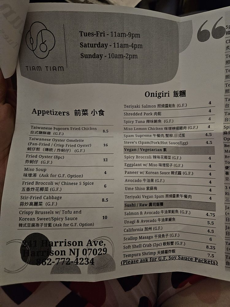 Welcome to Tiam Tiam, a delightful Japanese eatery located at 241 Harrison Ave in Harrison, NJ. Known for its casual atmosphere, Tiam Tiam offers an impressive menu that caters to various dietary preferences, including many vegan and vegetarian options.